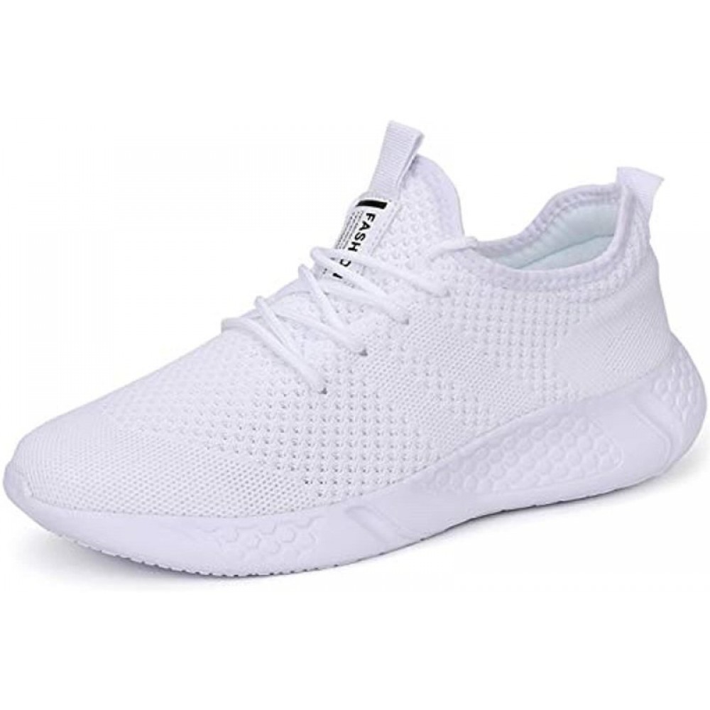 Men's Athletic Running Shoes Mesh Lightweight Sneakers Breathable Gym Shoes Casual Tennis Sport Shoes White