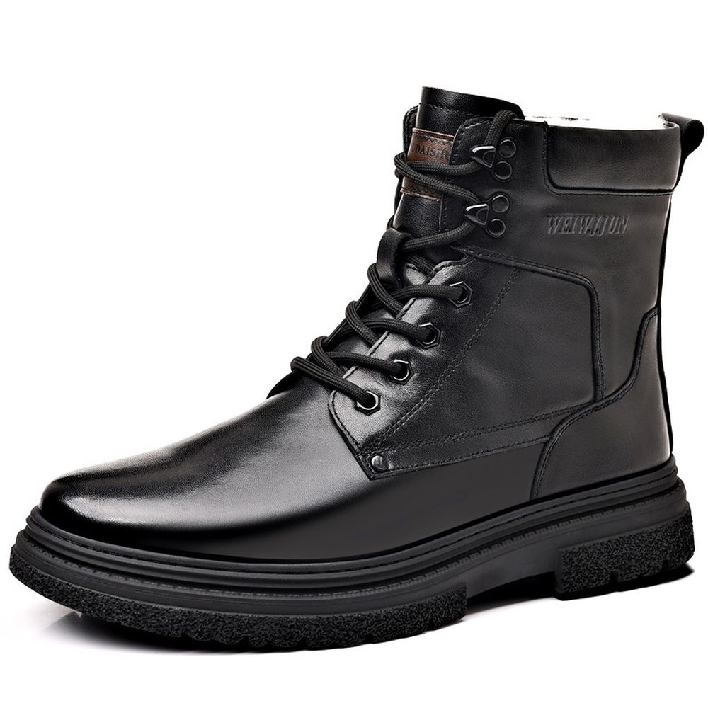 Men's Cotton Shoes Cowhide High-Top Snow Boots Plus Fleece Warm Boots