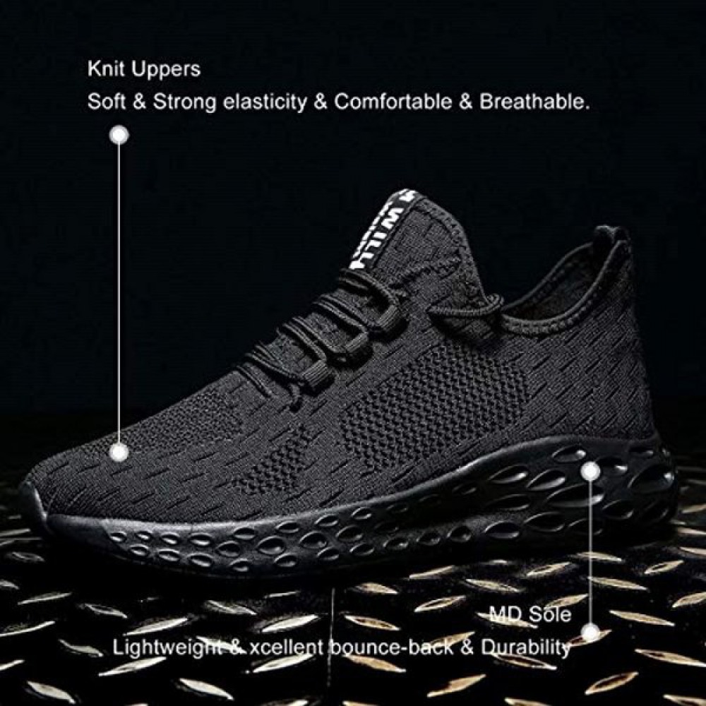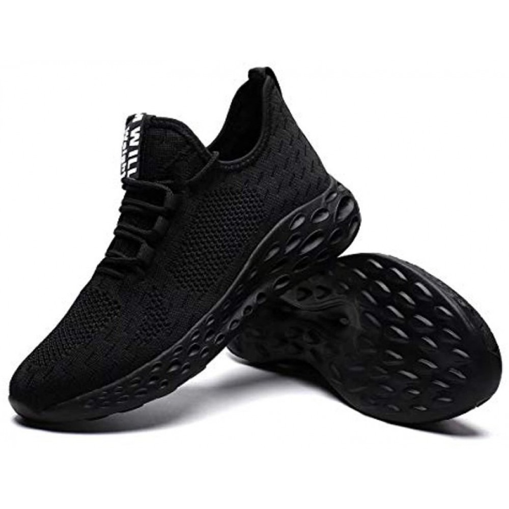 Men's Non Slip Gym Sneakers Lightweight Breathable Athletic Running Walking Tennis Shoes Black-White