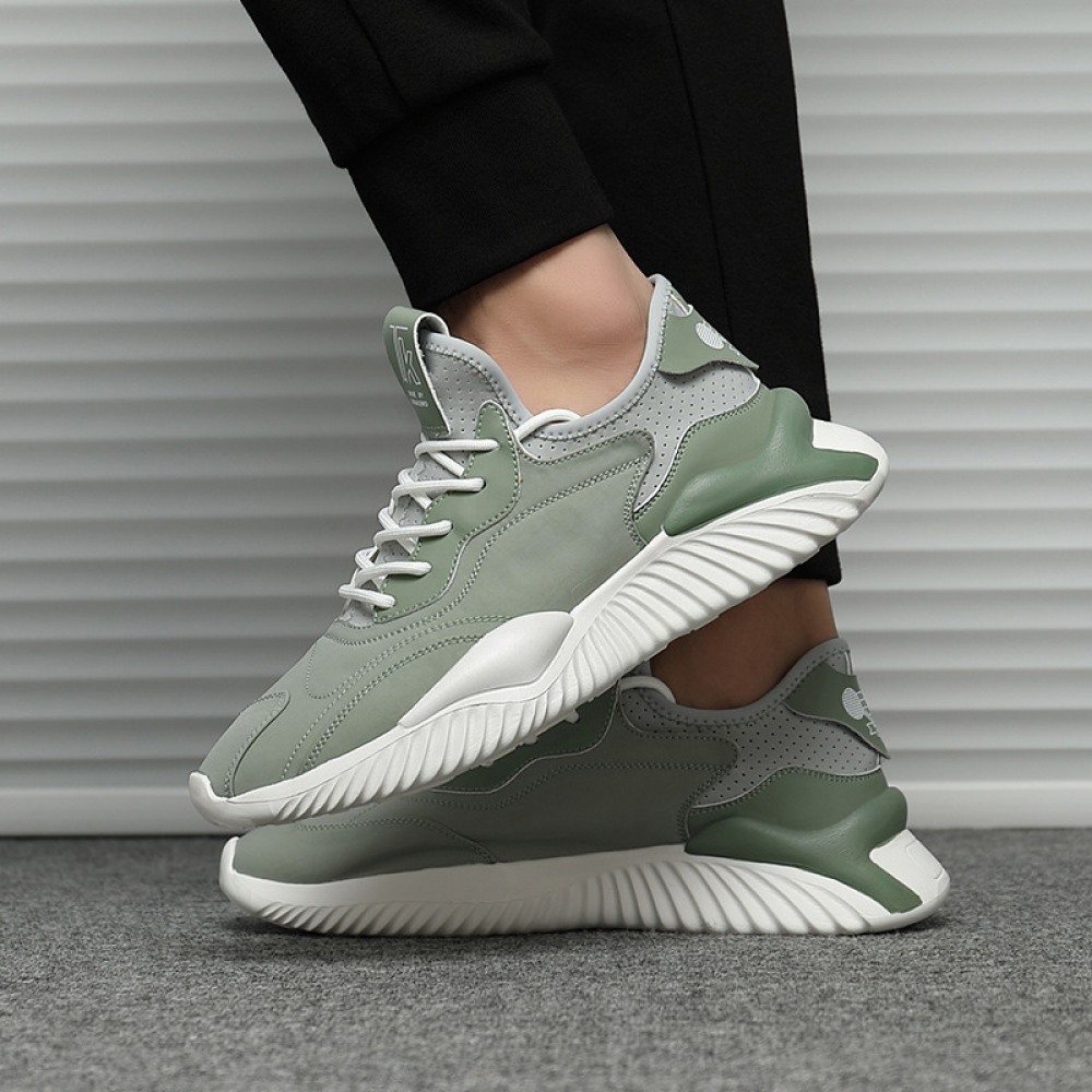 Men's Leather Fashion Casual Trendy Shoes Autumn Thick Soles Increased Breathable Mesh Sports Shoes